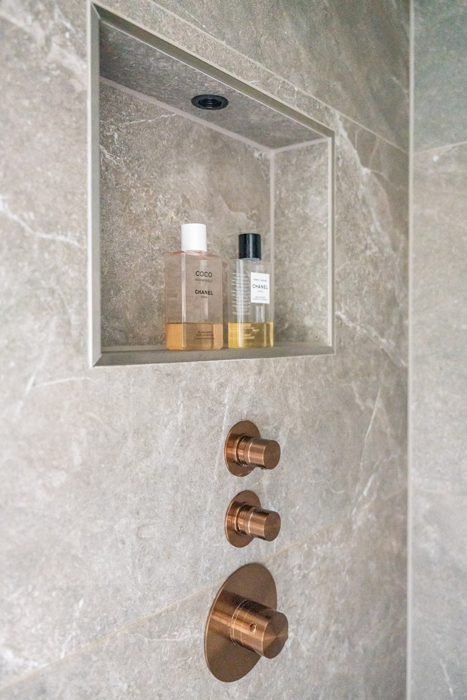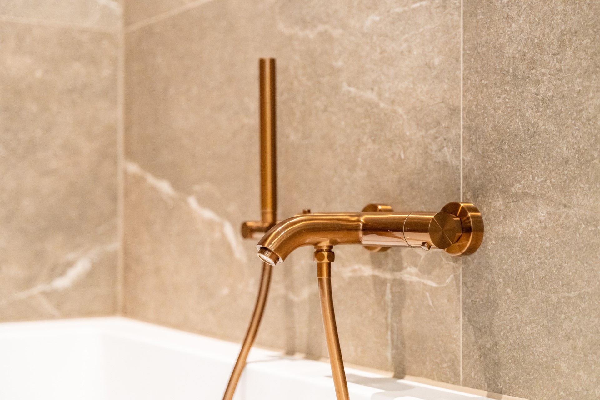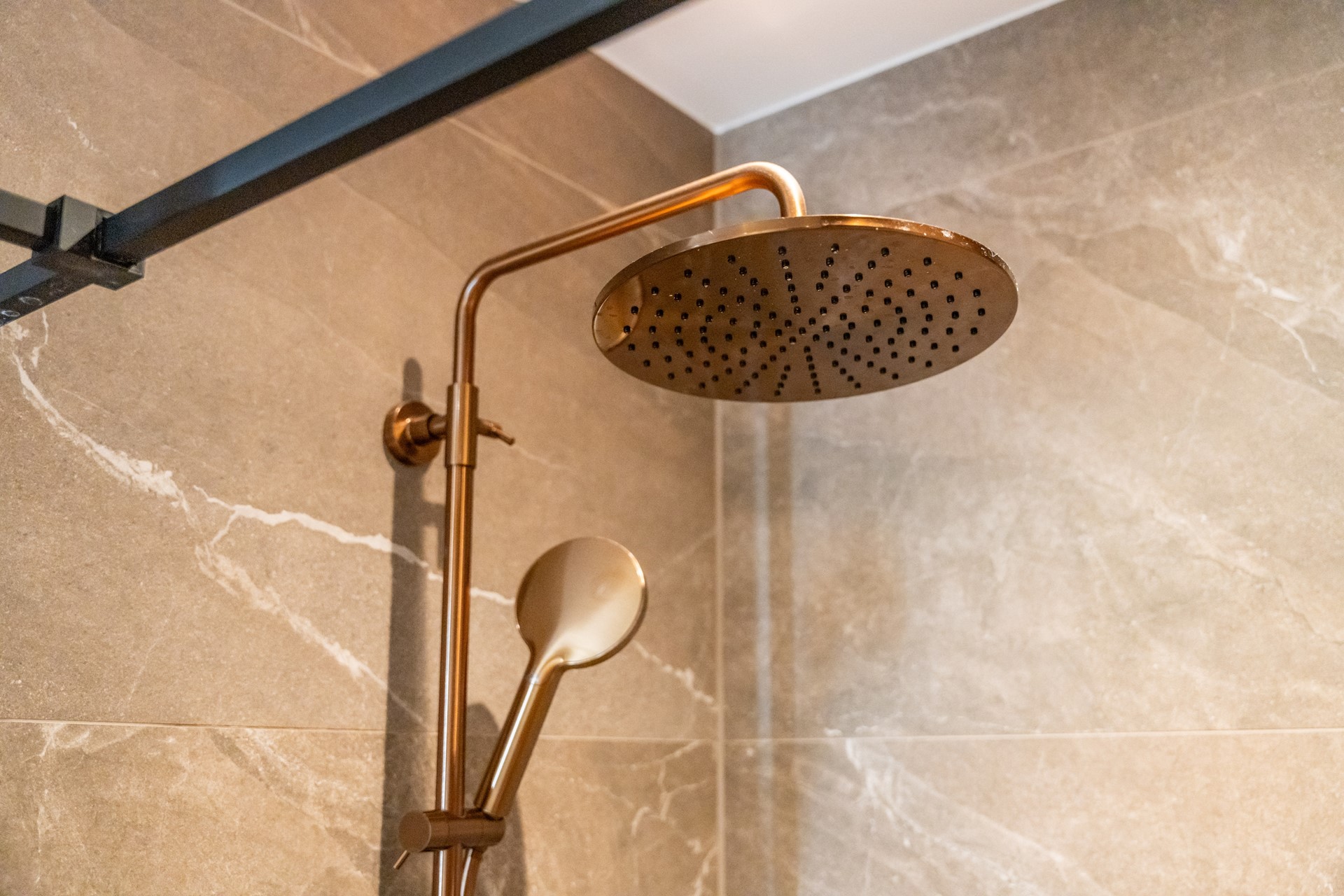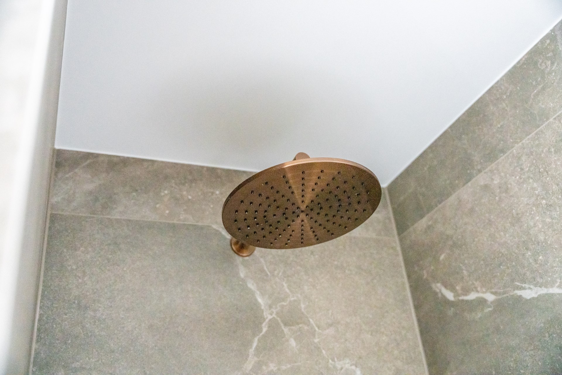 De woning beschikt over drie slaapkamers, waaronder een master bedroom met luxe en-suite badkamer voorzien van inloopdouche, tweede toilet en wastafelmeubel. De tweede badkamer beschikt over een ligbad, tweede douche en eveneens een stijlvol meubel. Eén van de kamers is momenteel ingericht als indrukwekkende walk-in closet.