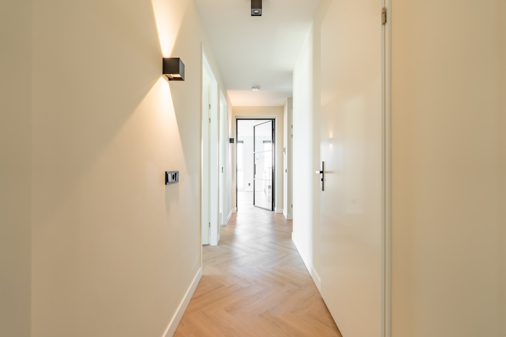 De stijlvolle zwarte stalen taatsdeuren, subtiele inbouwspots en het hoogwaardige afwerkingsniveau geven het geheel een moderne, exclusieve uitstraling. Daarnaast beschikt de woning over een warmteterugwininstallatie (WTW), is deze volledig gasloos en voorzien van HR++-glas — wat zorgt voor uitstekende isolatie en een bijzonder laag energieverbruik.