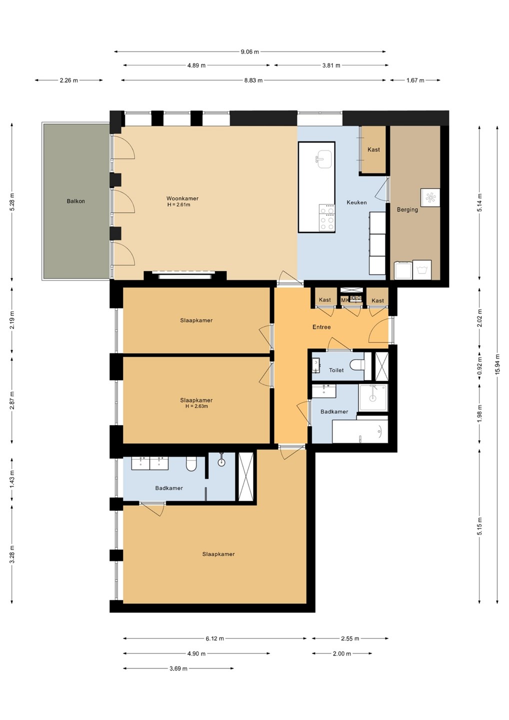 - Energielabel A+++ - Woonoppervlakte ca. 135 m² - Ruim balkon (ca. 12 m²) op het zuidwesten - 3 slaapkamers - 2 moderne badkamers, waarvan één met ligbad - Actieve VvE, bijdrage €165,50 per maand (€157,- appartement, €8,50 berging) - Warmtepomp voor verwarming en koeling (huurkosten van de warmtepomp circa €120 per maand, exclusief verbruik); - Parkeerplaats in parkeerkelder (huur: €90,- p.m.) - Gemeenschappelijke, fraai aangelegde binnentuin - Oplevering in overleg (vanaf half februari 2026)