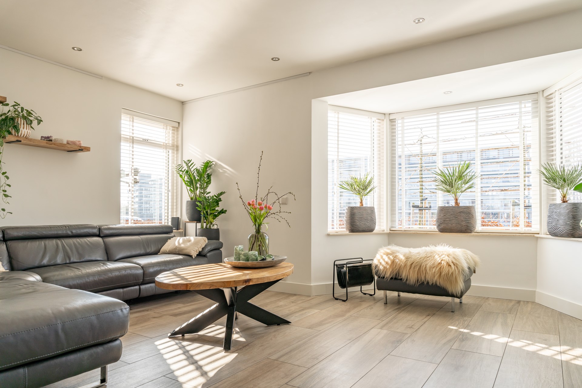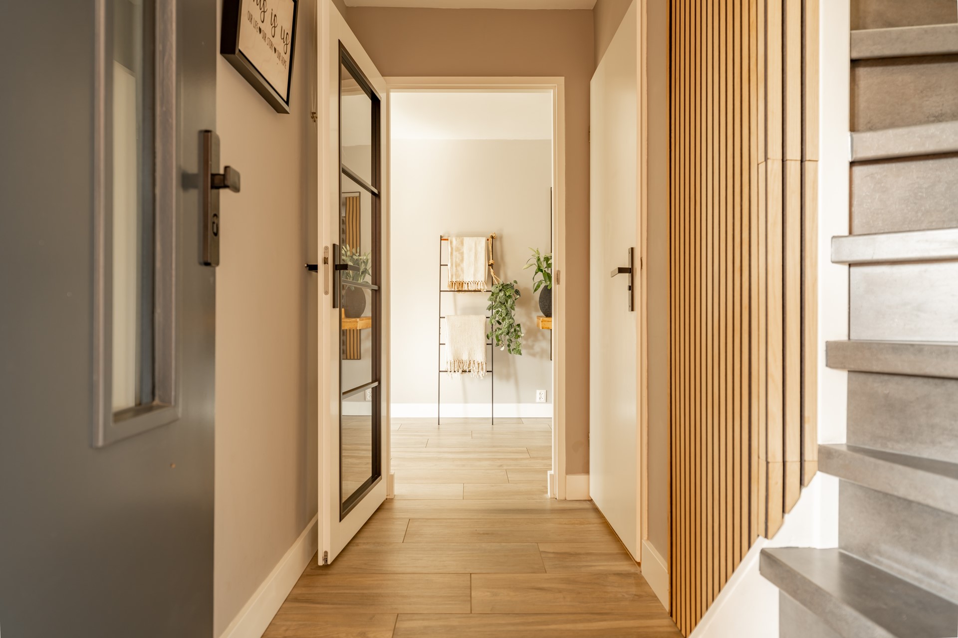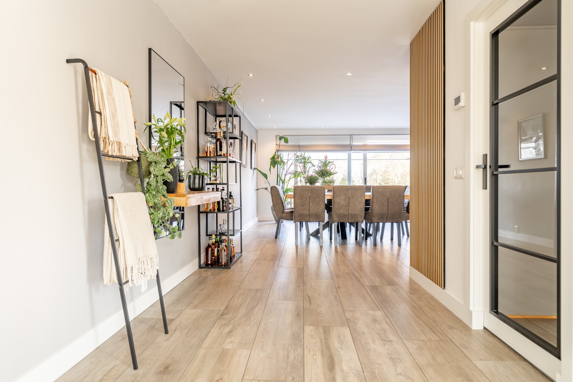 Via de ruime voortuin met oprit en carport, gelegen op het westen, bereikt u de entree van de woning. De hal vormt een verzorgde binnenkomst met trapkast, trapopgang en een modern toilet dat in 2026 is vernieuwd. De hardhouten voordeur is uitgevoerd met triple glas en onderstreept de solide kwaliteit van de woning. De woonkamer is royaal en heerlijk licht. De erker aan de voorzijde zorgt niet alleen voor extra ruimte, maar ook voor een prachtig uitzicht over het water van de Ringvaart. Hier ervaart u iedere dag het gevoel van vrij wonen. De woonkamer is modern afgewerkt met een verlaagd plafond met inbouwspots en een onderhoudsvriendelijke keramische tegelvloer met comfortabele vloerverwarming.