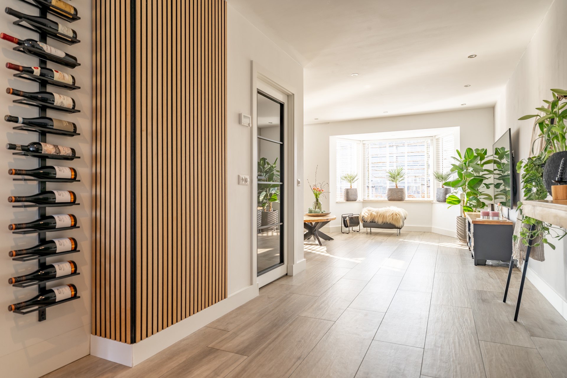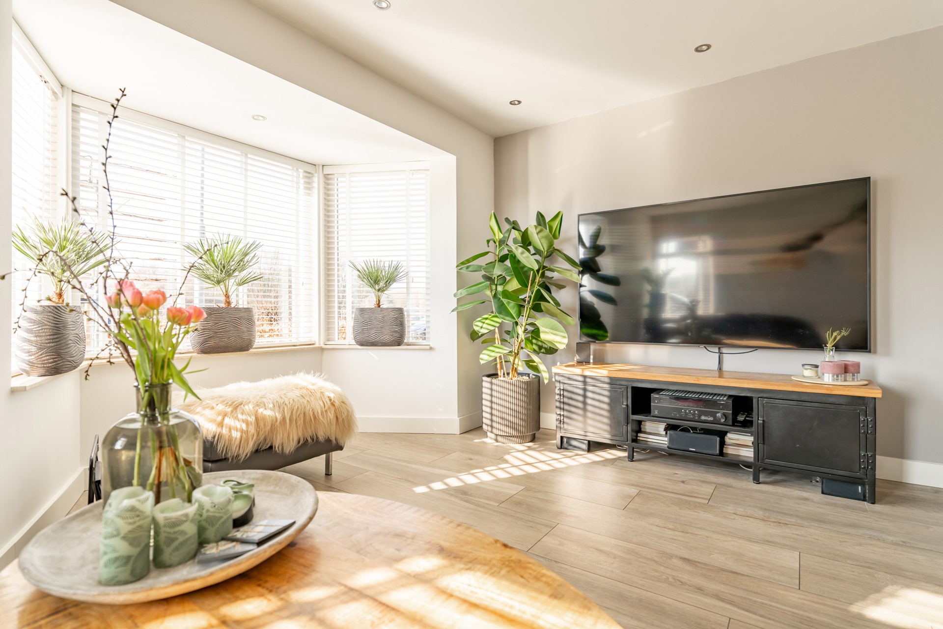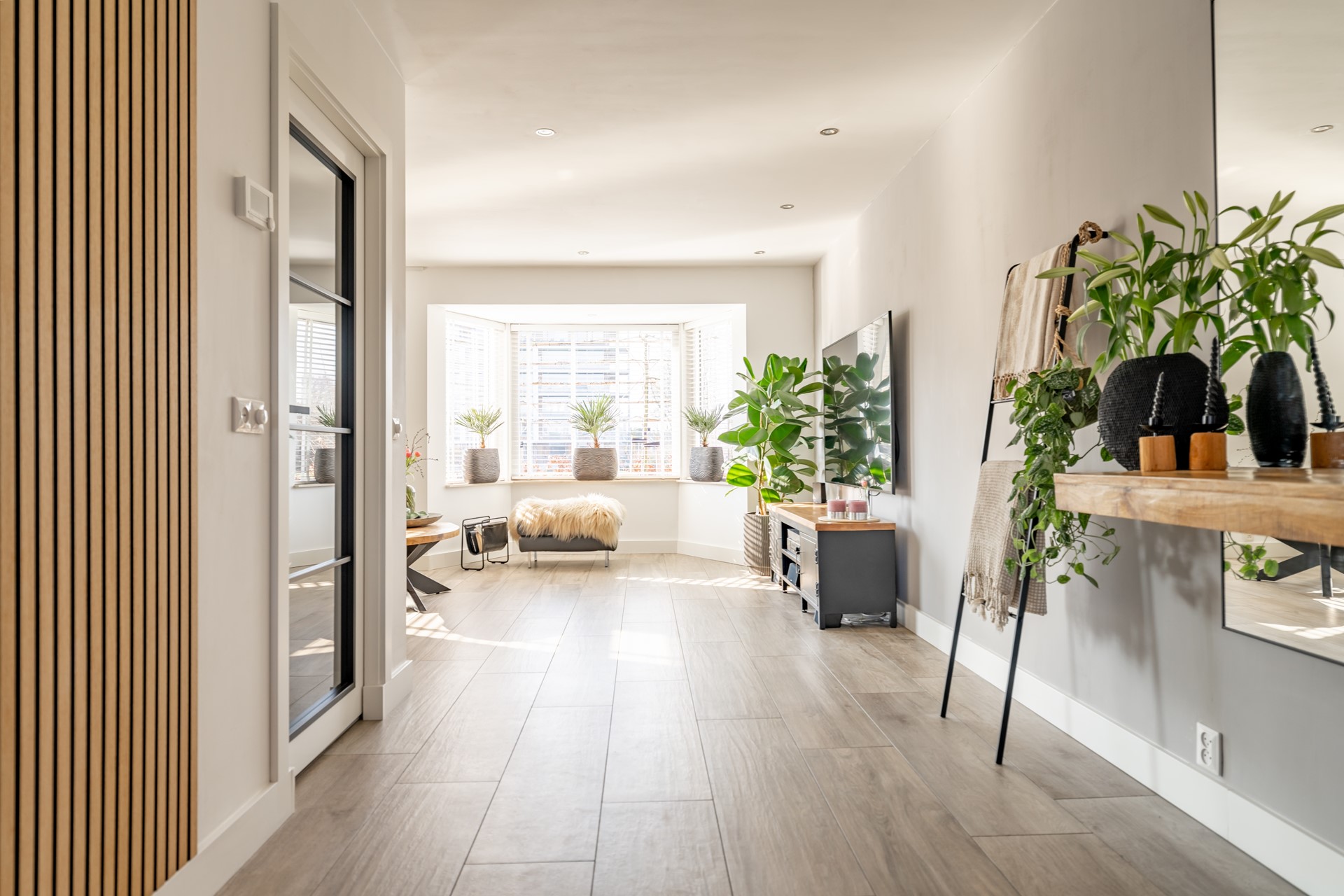 Via de ruime voortuin met oprit en carport, gelegen op het westen, bereikt u de entree van de woning. De hal vormt een verzorgde binnenkomst met trapkast, trapopgang en een modern toilet dat in 2026 is vernieuwd. De hardhouten voordeur is uitgevoerd met triple glas en onderstreept de solide kwaliteit van de woning. De woonkamer is royaal en heerlijk licht. De erker aan de voorzijde zorgt niet alleen voor extra ruimte, maar ook voor een prachtig uitzicht over het water van de Ringvaart. Hier ervaart u iedere dag het gevoel van vrij wonen. De woonkamer is modern afgewerkt met een verlaagd plafond met inbouwspots en een onderhoudsvriendelijke keramische tegelvloer met comfortabele vloerverwarming.