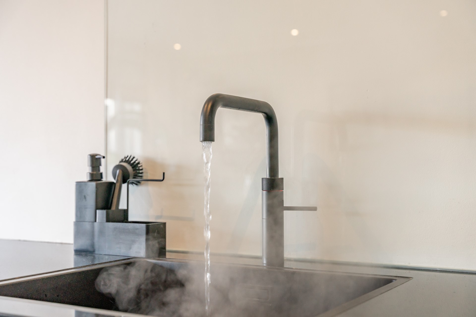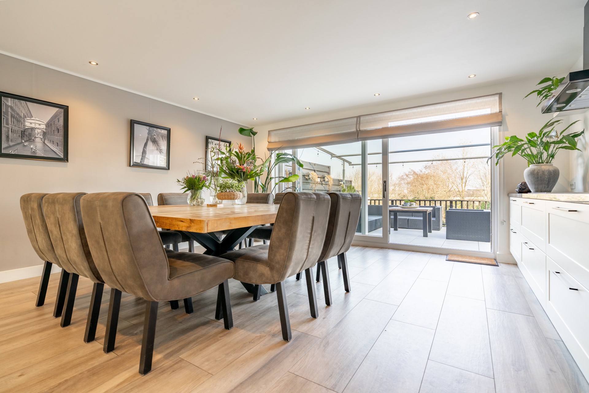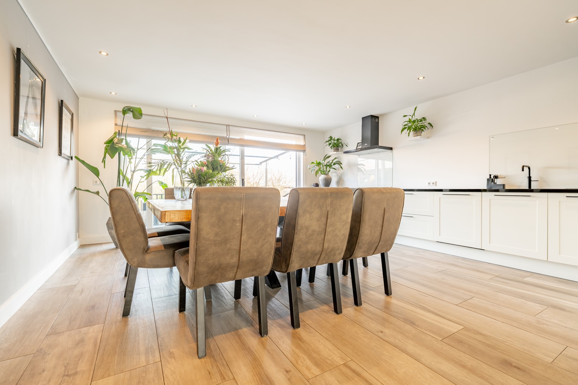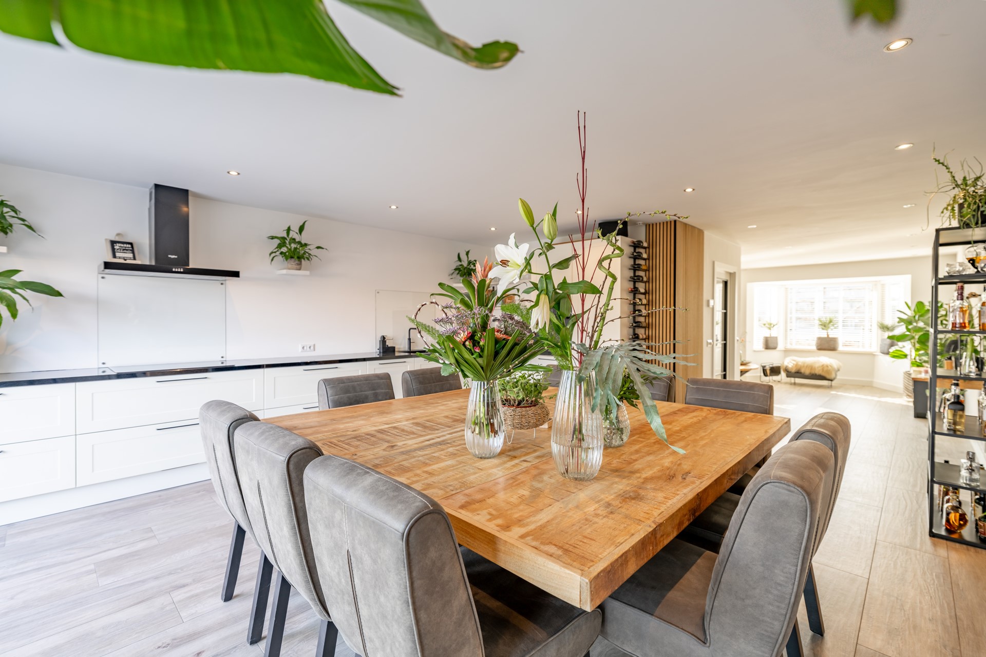 Aan de achterzijde is de woning in 2020 circa 3,5 meter uitgebouwd. Hierdoor is een ruime leefkeuken ontstaan die het hart van de woning vormt. De keuken is luxe uitgevoerd en voorzien van diverse inbouwapparatuur zoals een oven, koelkast, vriezer, afzuigkap, keramische kookplaat en een Quooker met gefilterd én sparkling water. Het granieten werkblad geeft de keuken een stijlvolle en robuuste uitstraling.