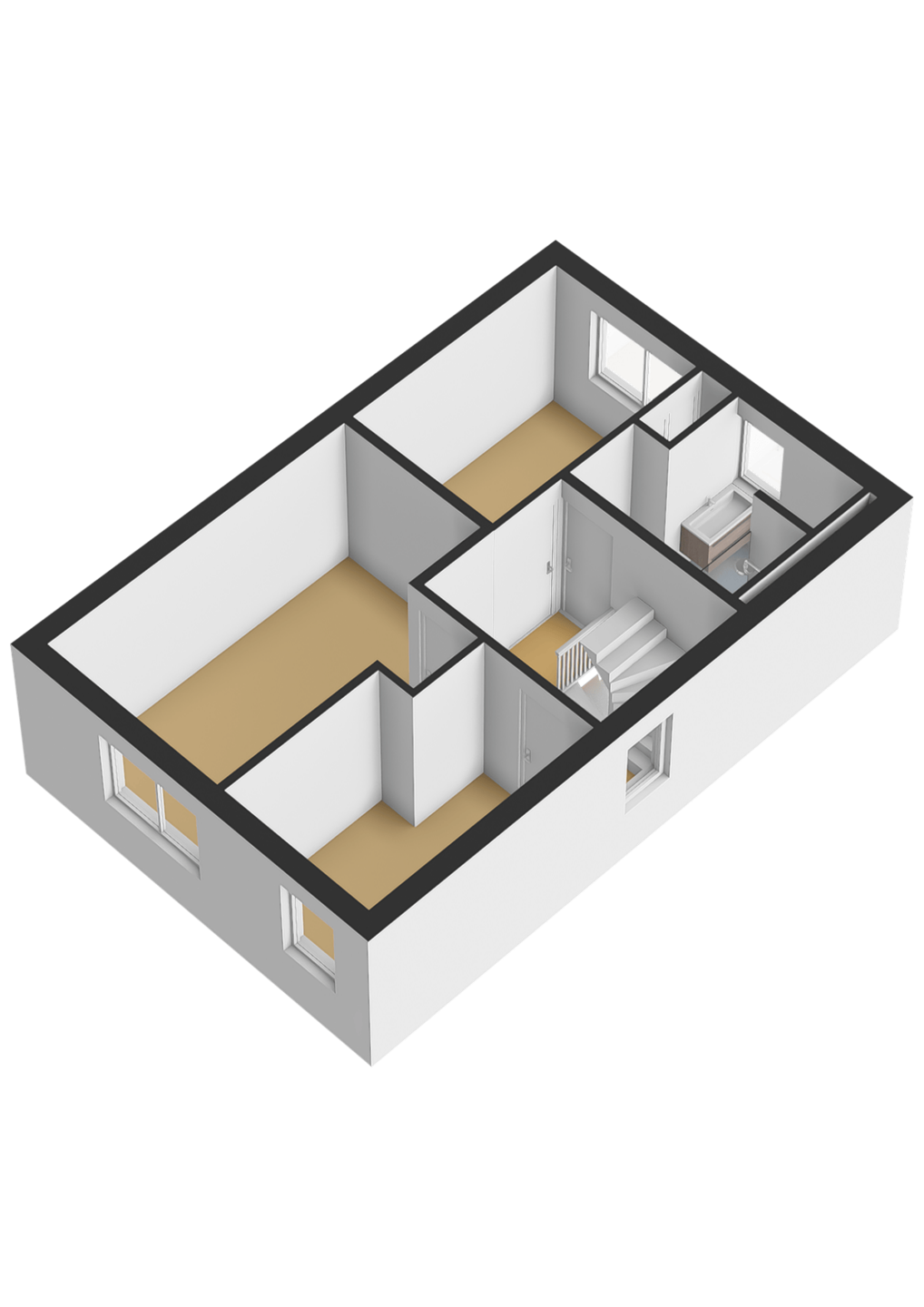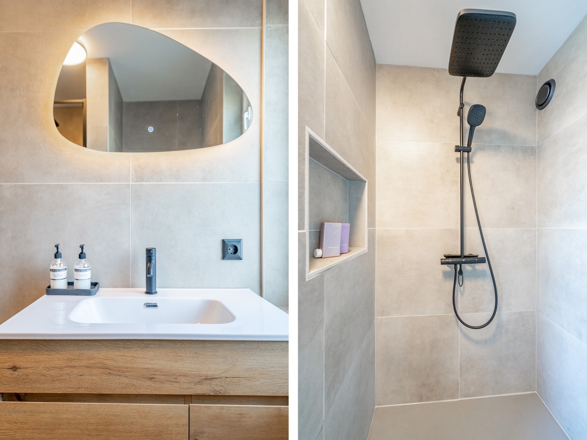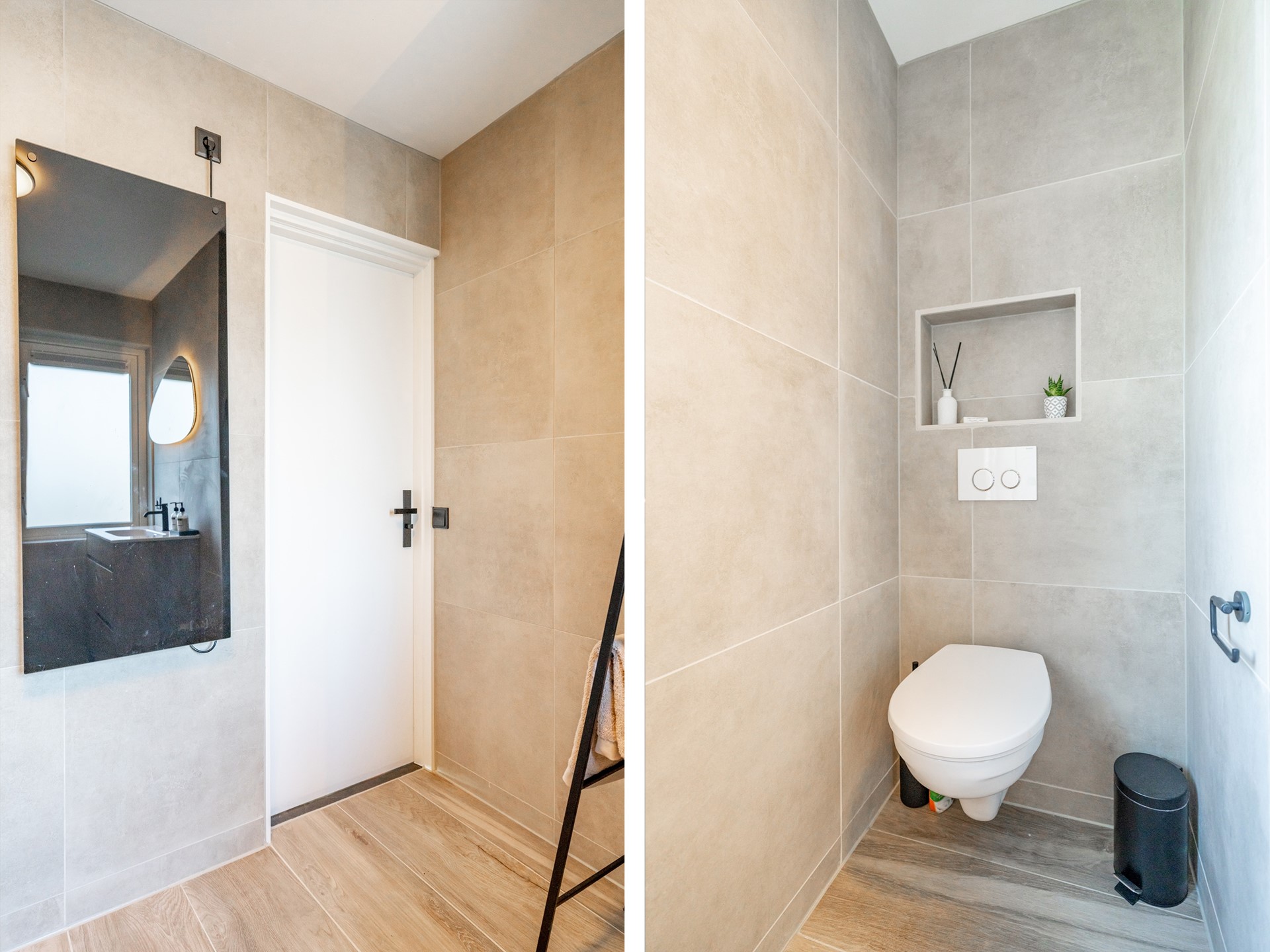 De eerste verdieping beschikt over een ruime overloop met toegang tot drie slaapkamers, waarvan twee aan de voorzijde en één aan de achterzijde. De kamers zijn modern afgewerkt met gestucte wanden en een laminaatvloer. De badkamer is in 2026 volledig vernieuwd en heeft een luxe en eigentijdse uitstraling. De badkamer beschikt over een douchecabine, toilet, wastafelmeubel en een handdoekradiator.