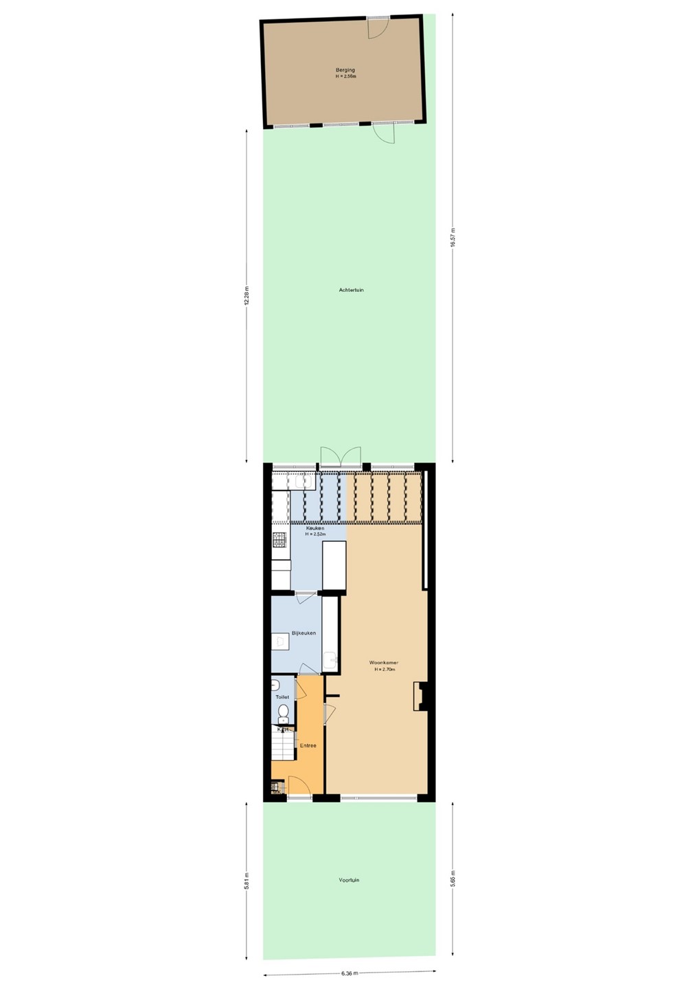 Tuin De diepe achtertuin biedt volop privacy en kent op elk moment van de dag een zonnig plekje. Dankzij de royale diepte geniet je al vanaf het vroege voorjaar tot ver in de herfst van de zon en het buitenleven. Achterin de tuin bevindt zich een ruime, goed geïsoleerde en goed verlichte multifunctionele ruimte over de volle breedte van het perceel (24m2) en voorzien van een groen dak; ideaal te gebruiken als kantoor, praktijkruimte of gastenverblijf en voorzien van een eigen ingang via de achterom. Ook de ruime voortuin op het zuiden biedt een heerlijke plek om in alle rust van de zon te genieten.
