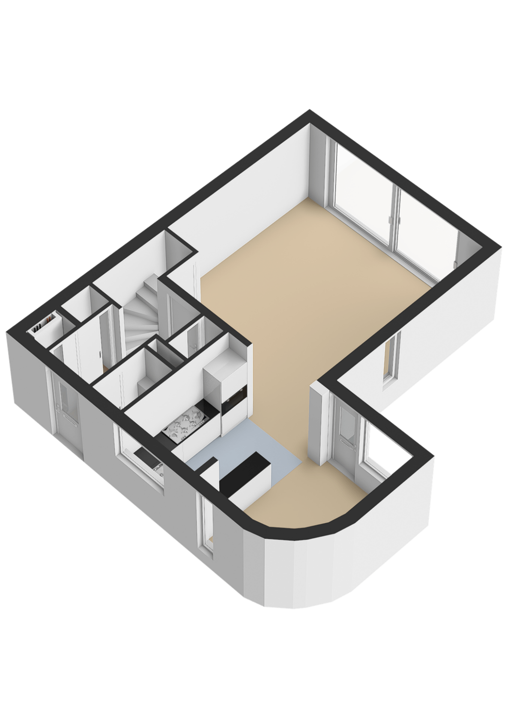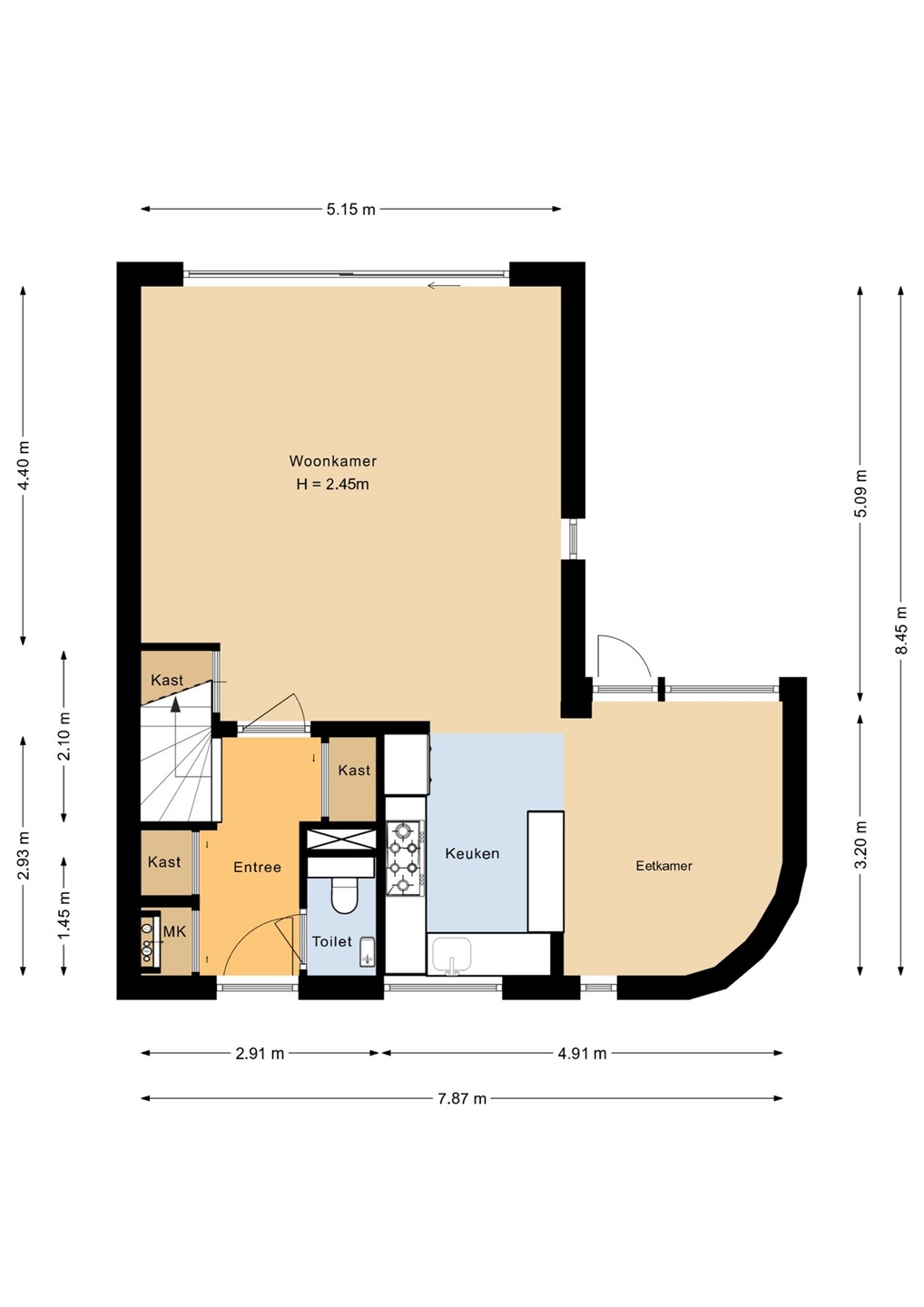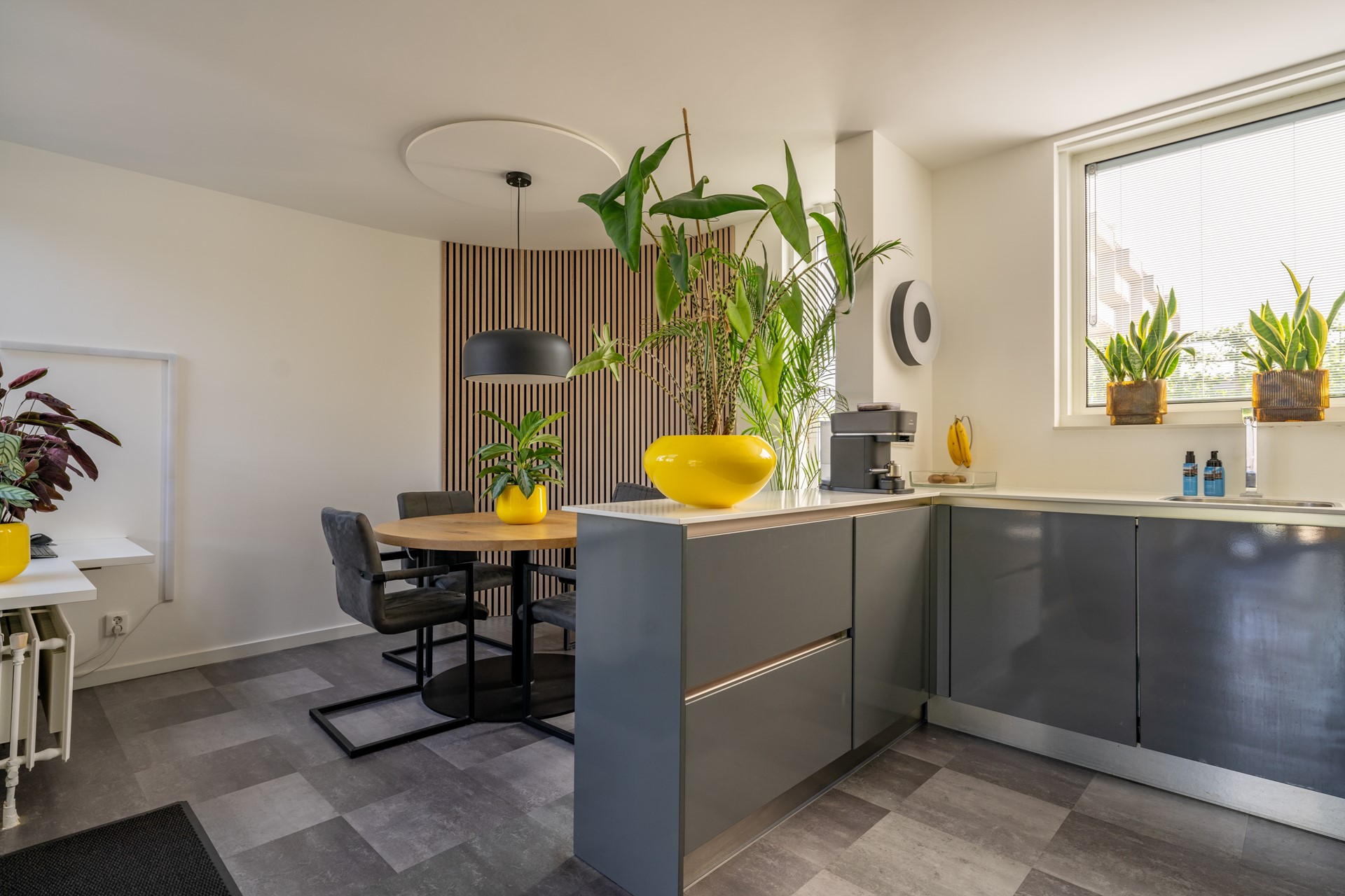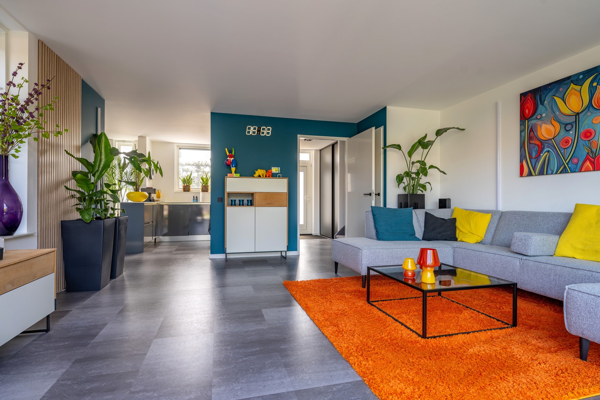 Ruime entreehal met meterkast, trapopgang en moderne toiletruimte met fonteintje. Vanuit de hal bereikt u de lichte, tuingerichte woonkamer met trapkast en een brede schuifpui naar de tuin, waardoor binnen en buiten naadloos in elkaar overlopen. De moderne woonkeuken in U-opstelling is voorzien van hoogwaardige Bosch inbouwapparatuur: een combi-oven, vaatwasser, koelkast, 5-pits gaskookplaat met wokbrander en een RVS afzuigschouw. De gehele begane grond is afgewerkt met een fraaie laminaatvloer en convectorradiator, wat bijdraagt aan een strak en sfeervol geheel.